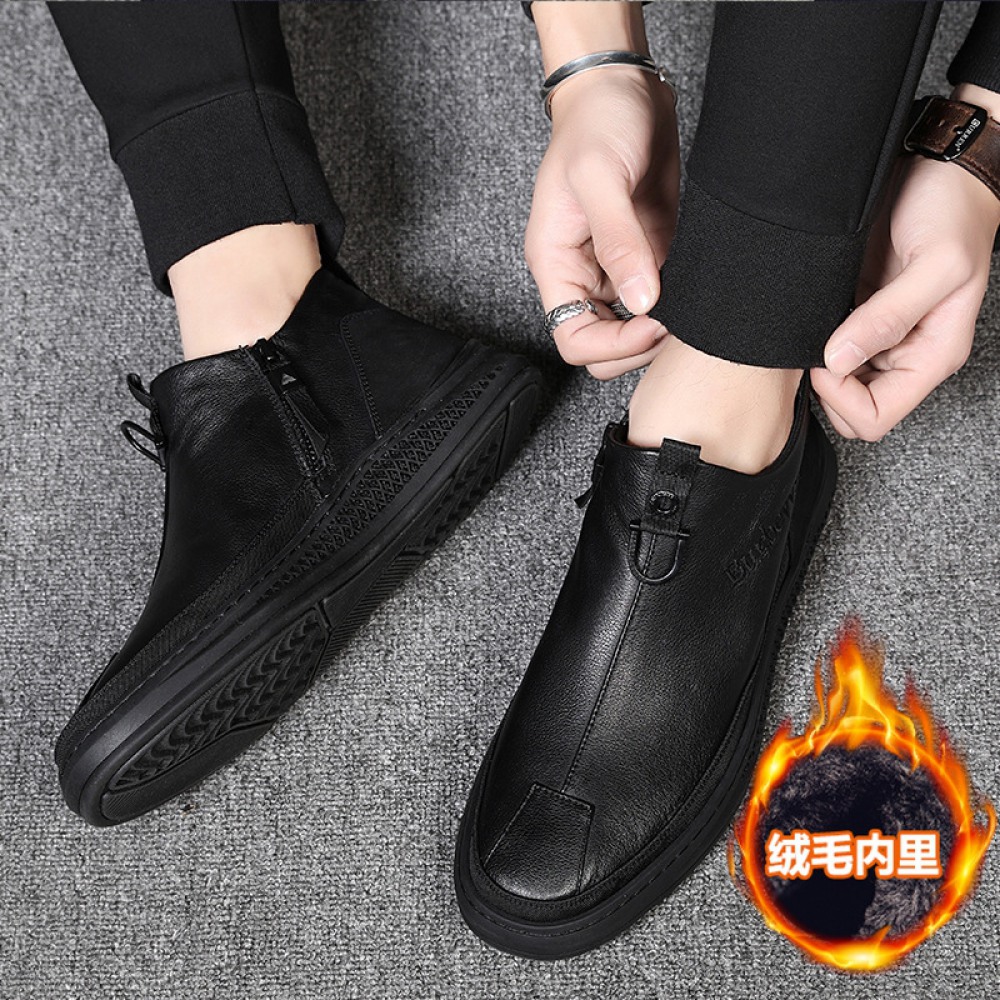 Men's Cotton Shoes High-Top Wool Warm Boots Leather Plus Suede Shoes