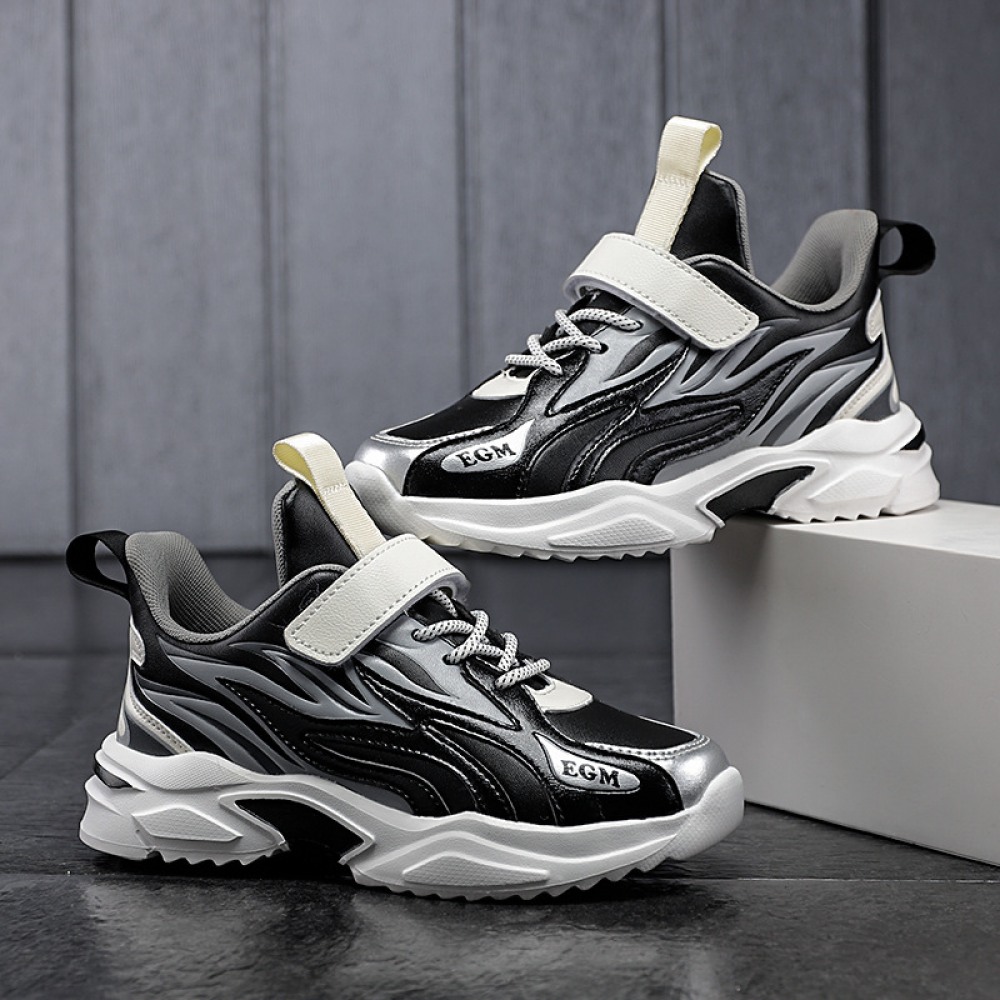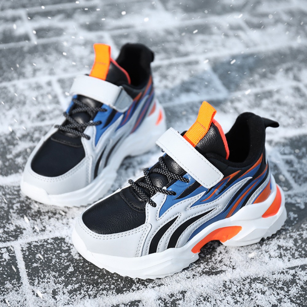 Children's Cotton Shoes Autumn and Winter New Two Cotton Plus Velvet Boys Sports Shoes Leather Velcro Kids Shoes