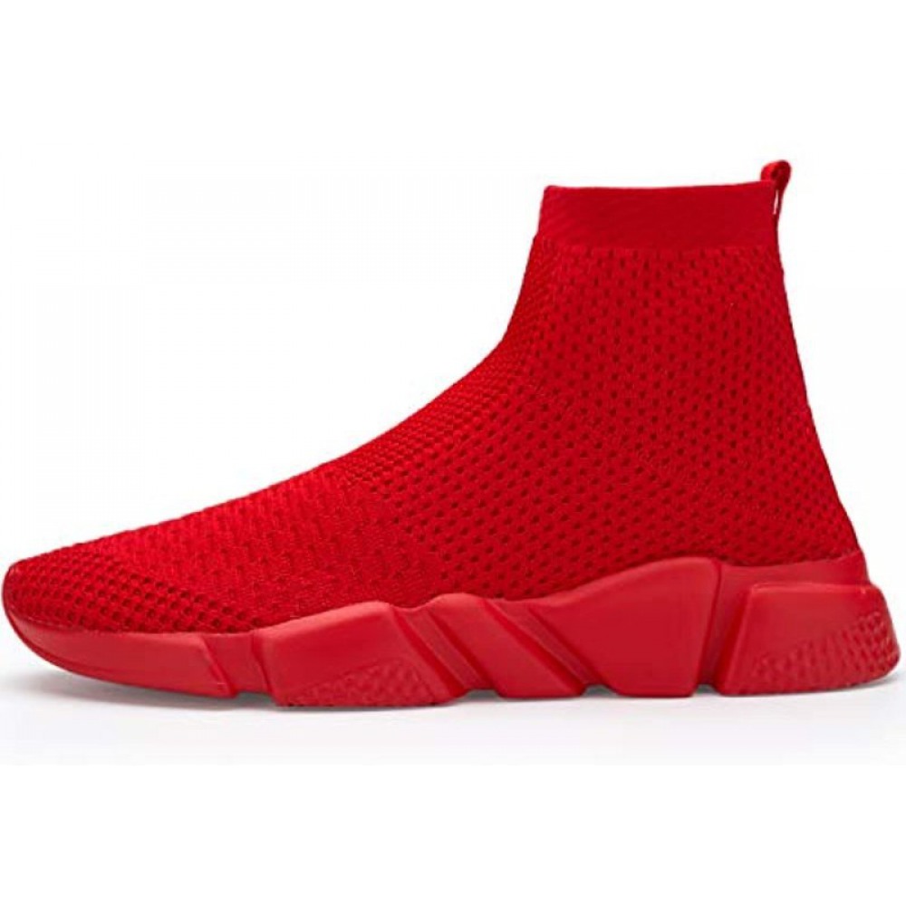 Men's Running Shoes Breathable Knit Slip On Sneakers Lightweight Athletic Shoes Casual Sports Shoes High Top All Red